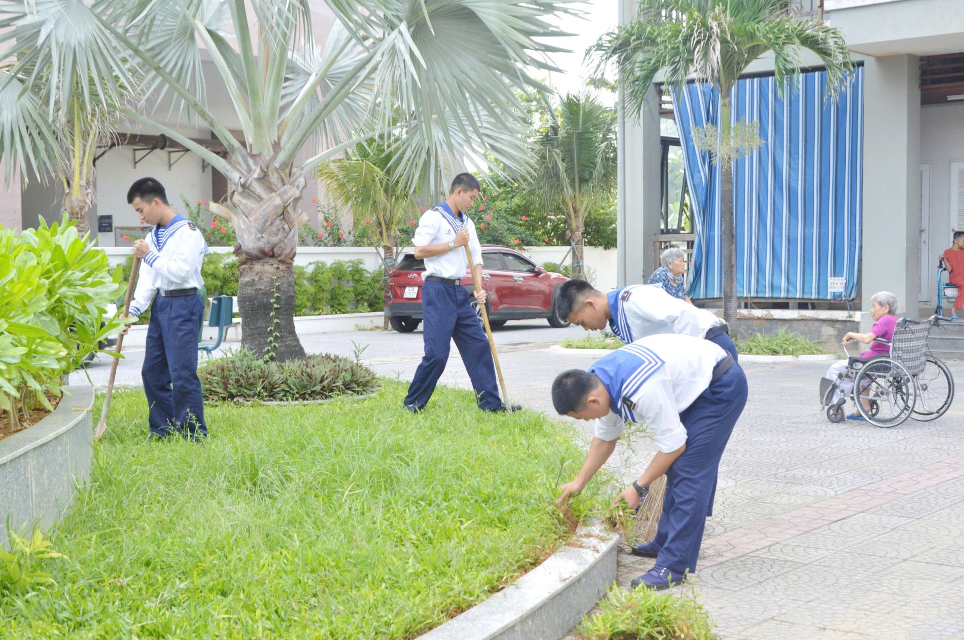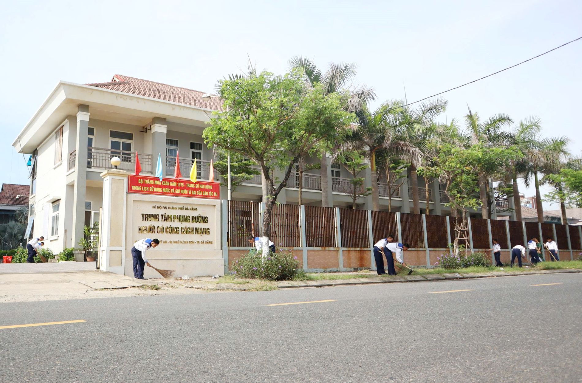Đoàn viên thanh niên Vùng 3 tổng dọn vệ sinh khuôn viên Trung tâm Phụng dưỡng người có công với cách mạng thành phố Đà Nẵng