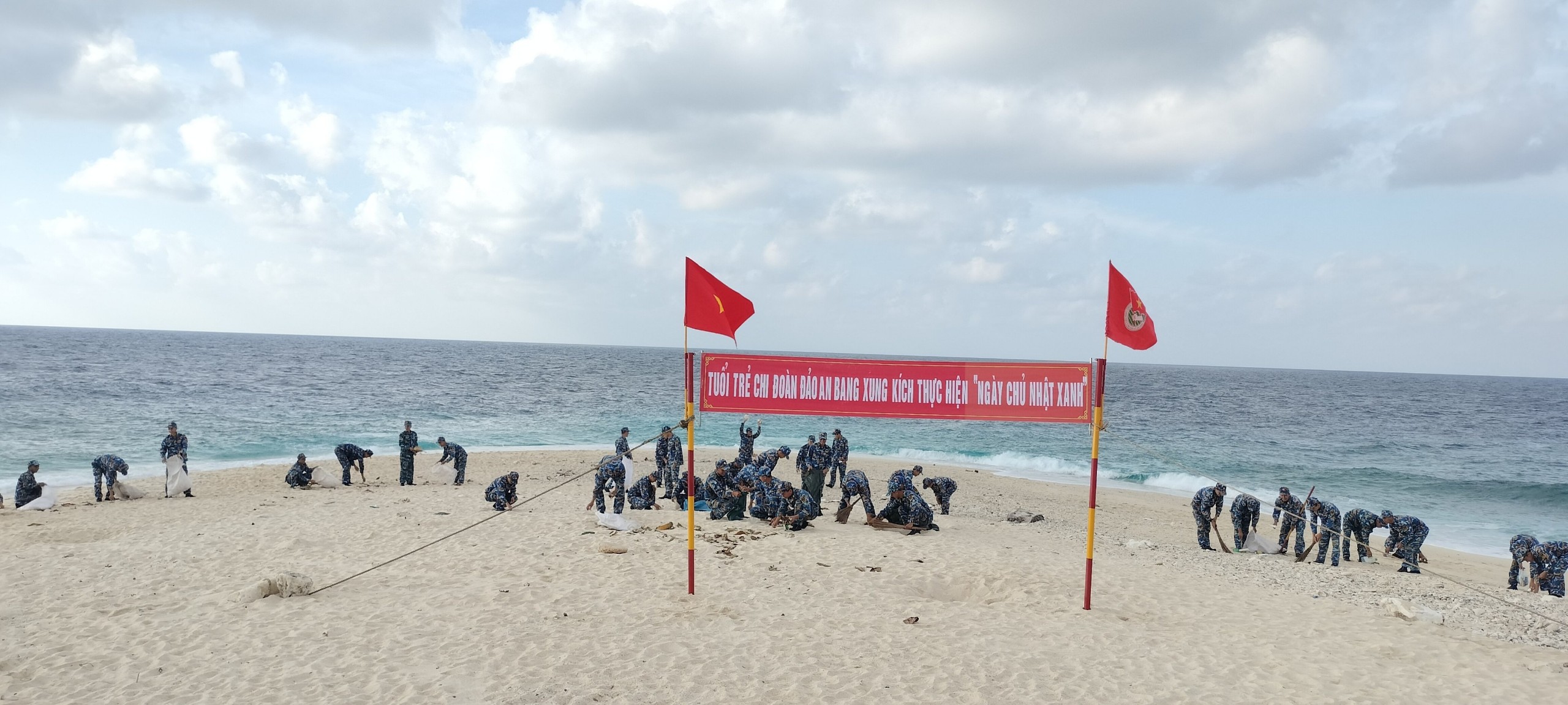 Cán bộ, đoàn viên Chi đoàn đảo An Bang thực hiện "Ngày chủ xanh"