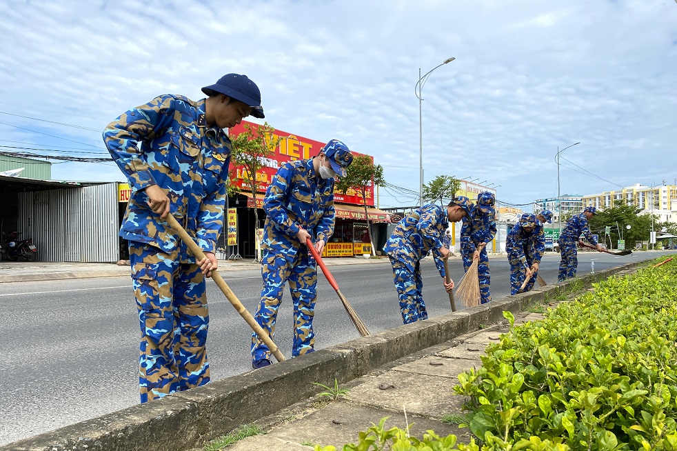 Cán bộ, chiến sĩ Vùng 5 vệ sinh đường giao thông