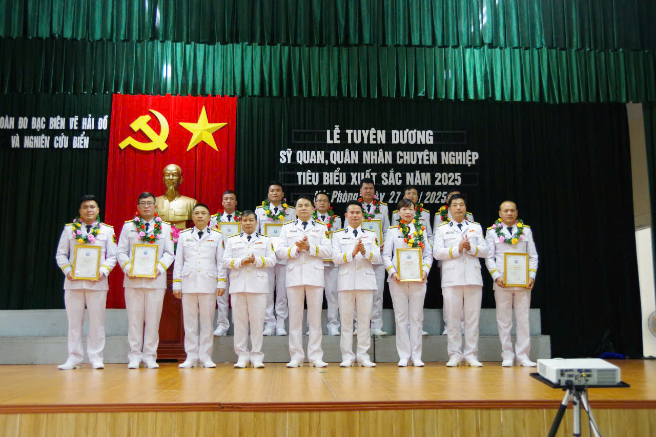 Chiều 27/2, tại Hải Phòng, Đoàn Đo đạc biên vẽ hải đồ và nghiên cứu biển, Bộ Tham mưu Hải quân tổ chức Lễ tuyên dương SQ, QNCN tiêu biểu xuất sắc năm 2025.