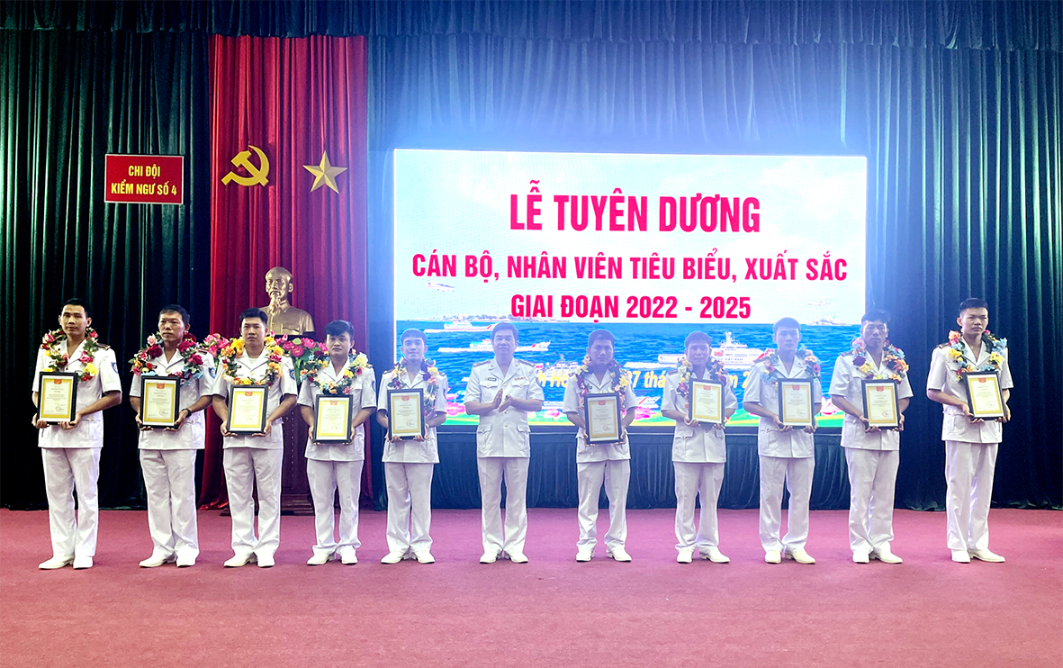 Dịp này, Chi đội Kiểm ngư số 4 tuyên dương 10 cán bộ, nhân viên. Đây là những cá nhân thực sự tiêu biểu, xuất sắc trong học tập, công tác, nhất là có tinh thần trách nhiệm, dũng cảm, sáng tạo trong thực hiện nhiệm vụ tìm kiếm cứu nạn ngư dân trên biển, những đồng chí có sáng kiến, sáng chế cải tiến kỹ thuật. Việc làm của cán bộ, nhân viên đã góp phần vào hoàn thành các nội dung, chỉ tiêu thi đua của Chi đội trong những năm qua.