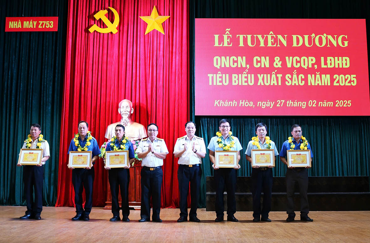 *Chiều 27/2, tại TP. Nha Trang, tỉnh Khánh Hoà, Nhà máy Z753, Cục Hậu cần - Kỹ thuật tổ chức Lễ tuyên dương QNCN, công nhân và viên chức quốc phòng, lao động hợp đồng tiêu biểu xuất sắc năm 2025. Đại tá Nguyễn Xuân Lâm, Bí thư Đảng ủy, Chính ủy Nhà máy dự và chủ trì. Cùng dự có Thượng tá Đoàn Văn Tình, Giám đốc Nhà máy.