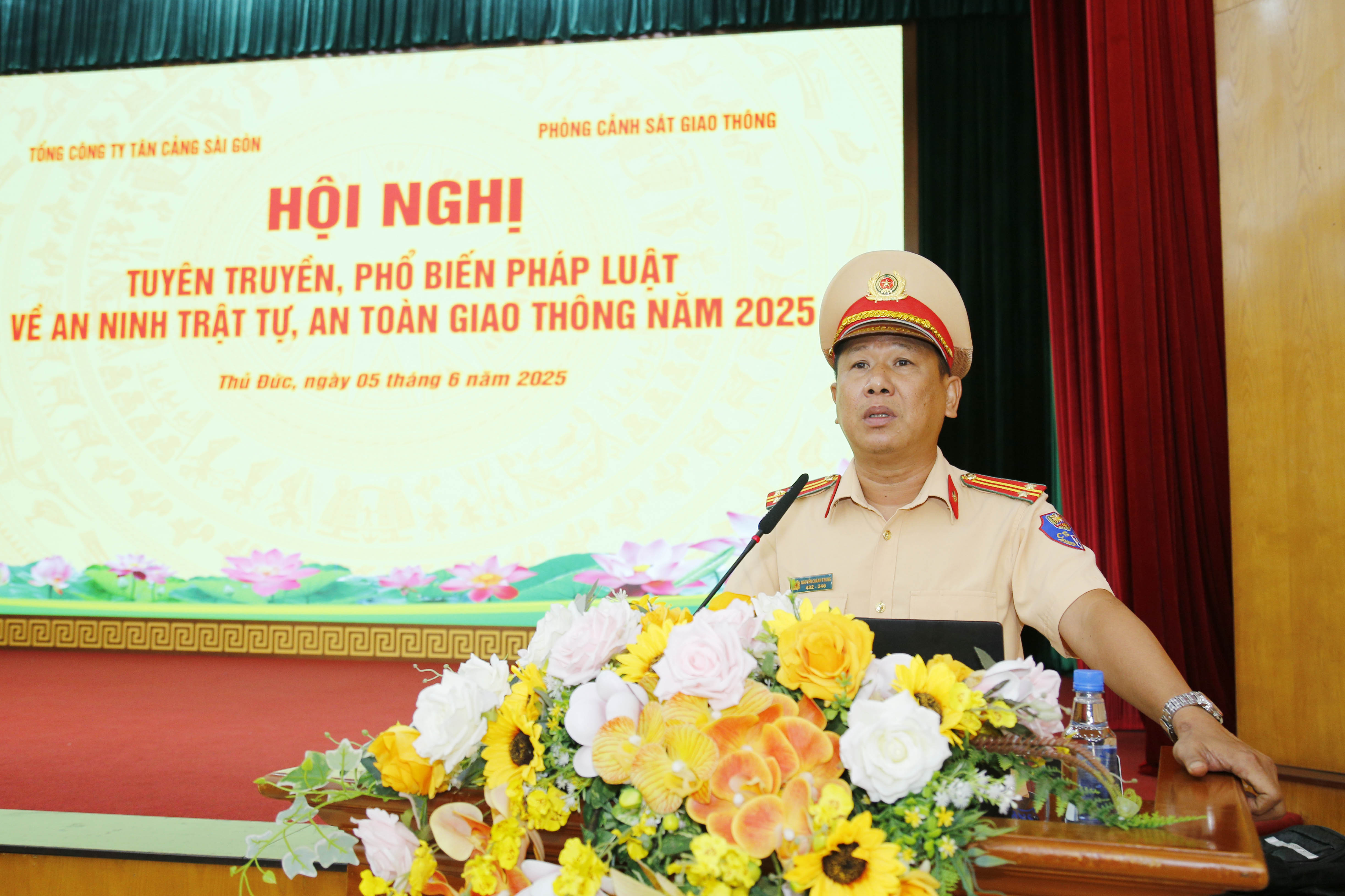 Tại hội nghị, báo cáo viên của Phòng Cảnh sát giao thông, Công an TP. Hồ Chí Minh đã thông tin đến cán bộ, công nhân viên, người lao động của Tổng công ty Tân cảng Sài Gòn, các đơn vị vệ tinh, lái xe, phụ xe của các doanh nghiệp vận tải hoạt động tại cụm cảng Tân cảng Cát Lái về Luật Giao thông đường bộ, cảnh báo về các vụ việc tai nạn giao thông; một số nội dung liên quan đến công tác bảo đảm trật tự an toàn giao thông đường bộ và đạo đức người lái xe, góp phần xây dựng văn hóa giao thông.