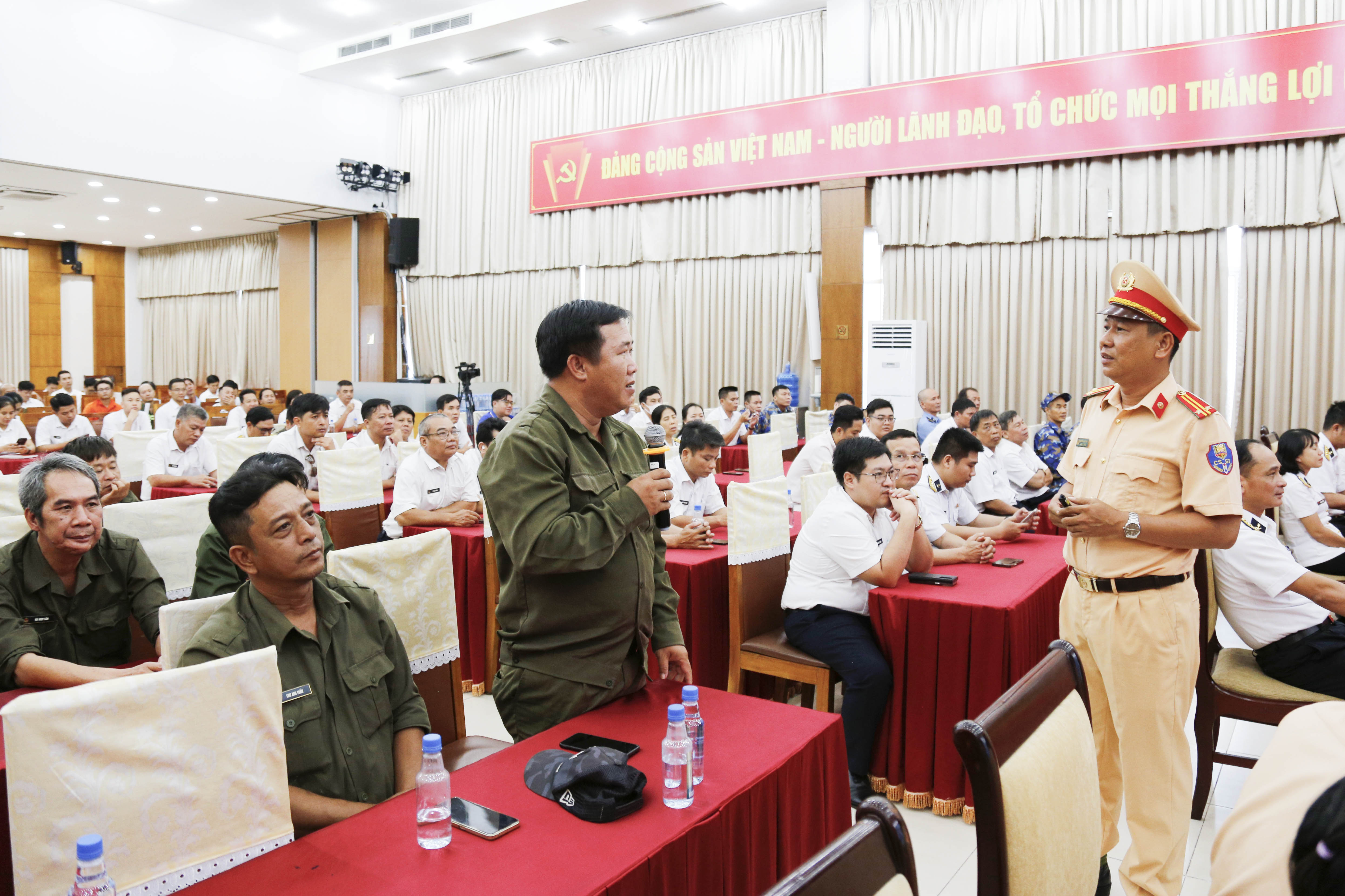 Trong buổi tuyên truyền, có nhiều câu hỏi tìm hiểu về xử lý tình huống tai nạn giao thông được người lao động tham gia nhiệt tình.