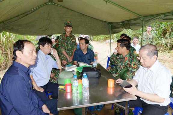 Tiếp tục thực hiện chỉ đạo của Thường vụ Quân ủy Trung ương, Bộ Quốc phòng về tập trung mọi nỗ lực cao nhất để tìm kiếm cứu nạn các nạn nhân bị mất liên lạc, ngay sáng 15-10 đã diễn ra cuộc họp trực tuyến giữa Thượng tướng Phan Văn Giang, Ủy viên Trung ương Đảng, Ủy viên Thường vụ Quân ủy Trung ương, Tổng Tham mưu trưởng, Thứ trưởng Bộ Quốc phòng và Sở chỉ huy tiền phương, đến hiện trường tìm kiếm cứu hộ, cứu nạn. Thượng tướng Phan Văn Giang chỉ đạo Bộ tư lệnh Công binh, Bộ tư lệnh Quân khu 4 và các đơn vị liên quan phối hợp chặt chẽ với Bộ Giao thông vận tải, UBND tỉnh Thừa Thiên-Huế huy động tối đa phương tiện, lực lượng tham gia, tổ chức tìm kiếm tất cả những nạn nhân đang còn mất tích; trong đó, đặc biệt chú trọng công tác an toàn về người và phương tiện, trang thiết bị. Tại hiện trường, qua hệ thống truyền hình trực tuyến, chúng tôi nghe đồng chí Tổng Tham mưu trưởng lệnh cho các đơn vị: “Binh chủng Công binh và Quân khu 4 huy động lực lượng, phượng tiện máy móc tốt nhất, hiện đại nhất hiện đang có mặt tại các tỉnh từ Nghệ An đến Thừa Thiên-Huế nhanh chóng cơ động đến hiện trường. Đặc biệt, tổ chức cho các lực lượng thay ca, làm cả ngày và đêm”. Trung tướng Nguyễn Trọng Bình, Phó tổng Tham mưu trưởng trực tiếp chỉ đạo công tác tìm kiếm nạn nhân tại hiện trường và động viên các lực lượng cố gắng hoàn thành trong thời gian sớm nhất.