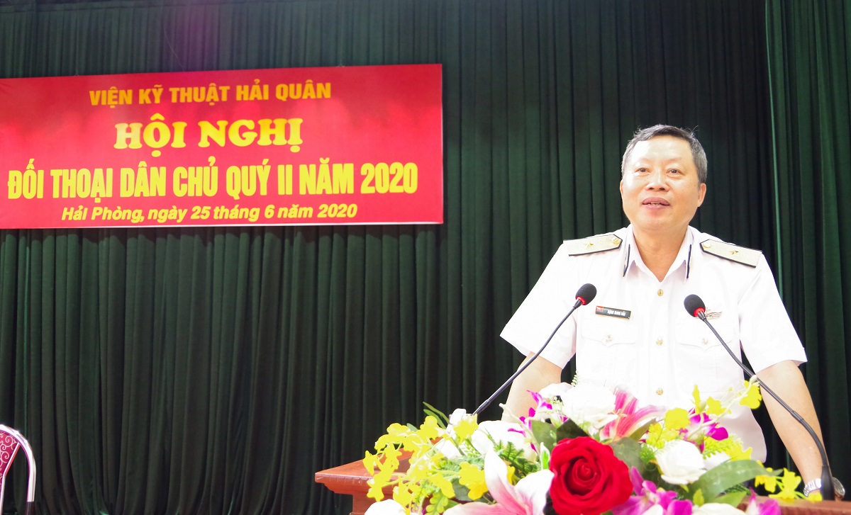 Chiều 25-6, tại Hải Phòng, Viện Kỹ thuật Hải quân tổ chức Hội nghị đối thoại dân chủ quý II năm 2020. Chuẩn Đô đốc Đặng Minh Hải, Phó Chính ủy Hải quân, Trưởng ban chỉ đạo xây dựng và thực hiện quy chế dân chủ cơ sở Quân chủng dự, chỉ đạo và trực tiếp đối thoại với cán bộ, nhân viên, chiến sĩ đơn vị.