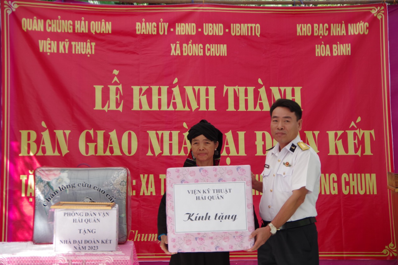 Sáng 11/10, Viện Kỹ thuật Hải quân phối hợp với Kho bạc Nhà nước tỉnh Hòa Bình, Đảng ủy và UBND xã Đồng Chum (huyện Đà Bắc, tỉnh Hòa Bình) tổ chức khánh thành và bàn giao nhà đại đoàn kết tặng gia đình bà Xa Thị Tùm.