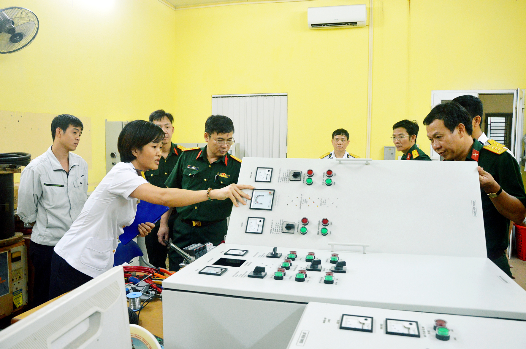 Đoàn công tác Cục Khoa học quân sự, Bộ Quốc phòng kiểm tra hệ thống điều khiển bắn một số loại vũ khí đặc chủng do Viện Kỹ thuật Hải quân thiết kế, chế tạo. Ảnh: CTV