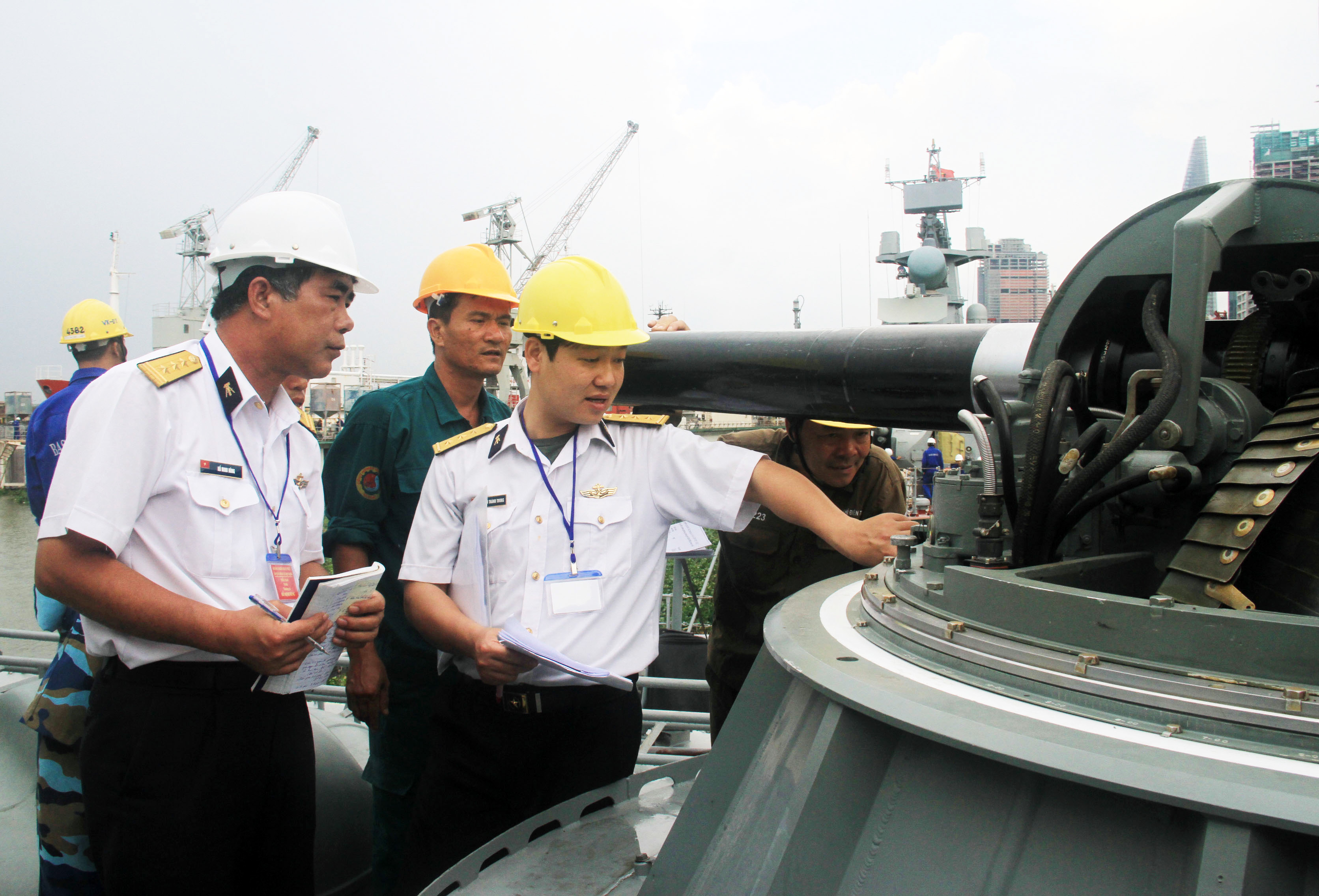 Cán bộ Viện Kỹ thuật Hải quân tham gia hội đồng nghiệm thu Tàu 12418 do Tổng công ty Ba Son đóng mới cho Quân chủng Hải quân. Ảnh: Duy Khánh