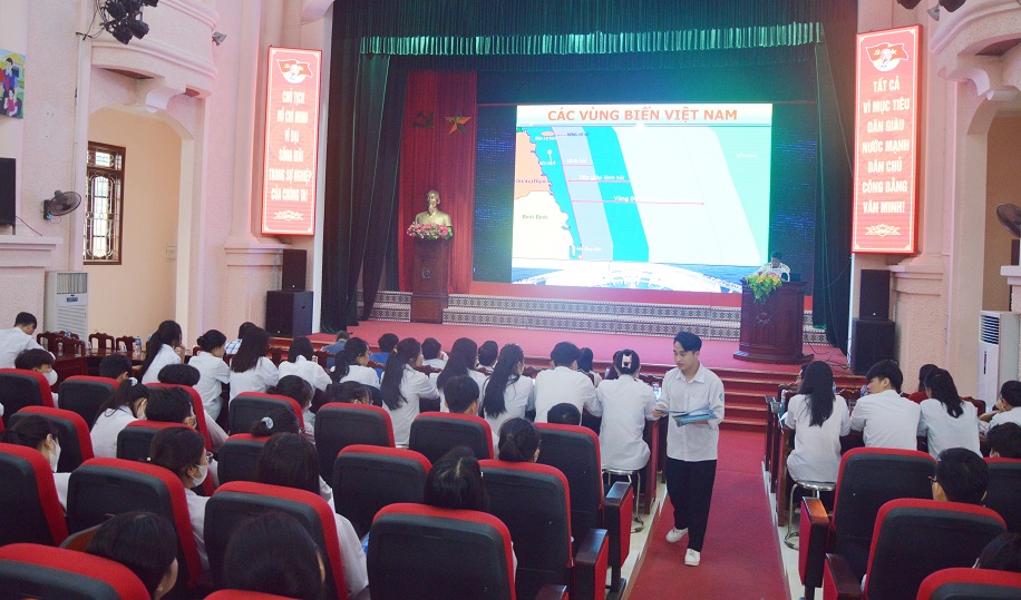 Báo cáo viên của Viện Kỹ thuật đã thông tin tới giáo viên, học sinh về vị trí, vai trò, tầm quan trọng của biển, đảo Việt Nam; vai trò của Hải quân Nhân dân Việt Nam; thông tin về Học viện Hải quân và những điều cần biết để trở thành học viên Học viện Hải quân…