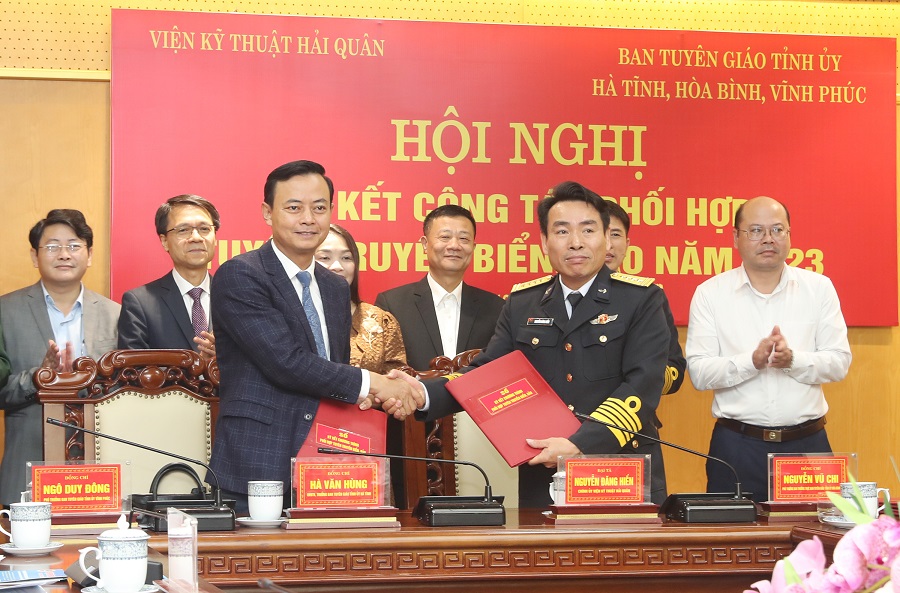 Sáng 12/1, tại Hà Tĩnh, Viện Kỹ thuật Hải quân và Ban Tuyên giáo Tỉnh ủy: Hà Tĩnh, Hòa Bình, Vĩnh Phúc tổ chức Hội nghị sơ kết công tác tuyền truyền biển, đảo (TTBĐ) năm 2023 và triển khai nhiệm vụ năm 2024.