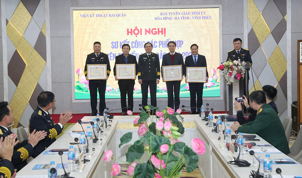 Sáng 15/12, tại thành phố Hòa Bình, tỉnh Hòa Bình, Viện Kỹ thuật Hải quân phối hợp với Ban Tuyên giáo Tỉnh ủy: Hòa Bình, Vĩnh Phúc, Hà Tĩnh tổ chức sơ kết 2 năm (2021-2022) công tác phối hợp tuyên truyền biển, đảo (TTBĐ) và triển khai phương hướng, nhiệm vụ năm 2023.