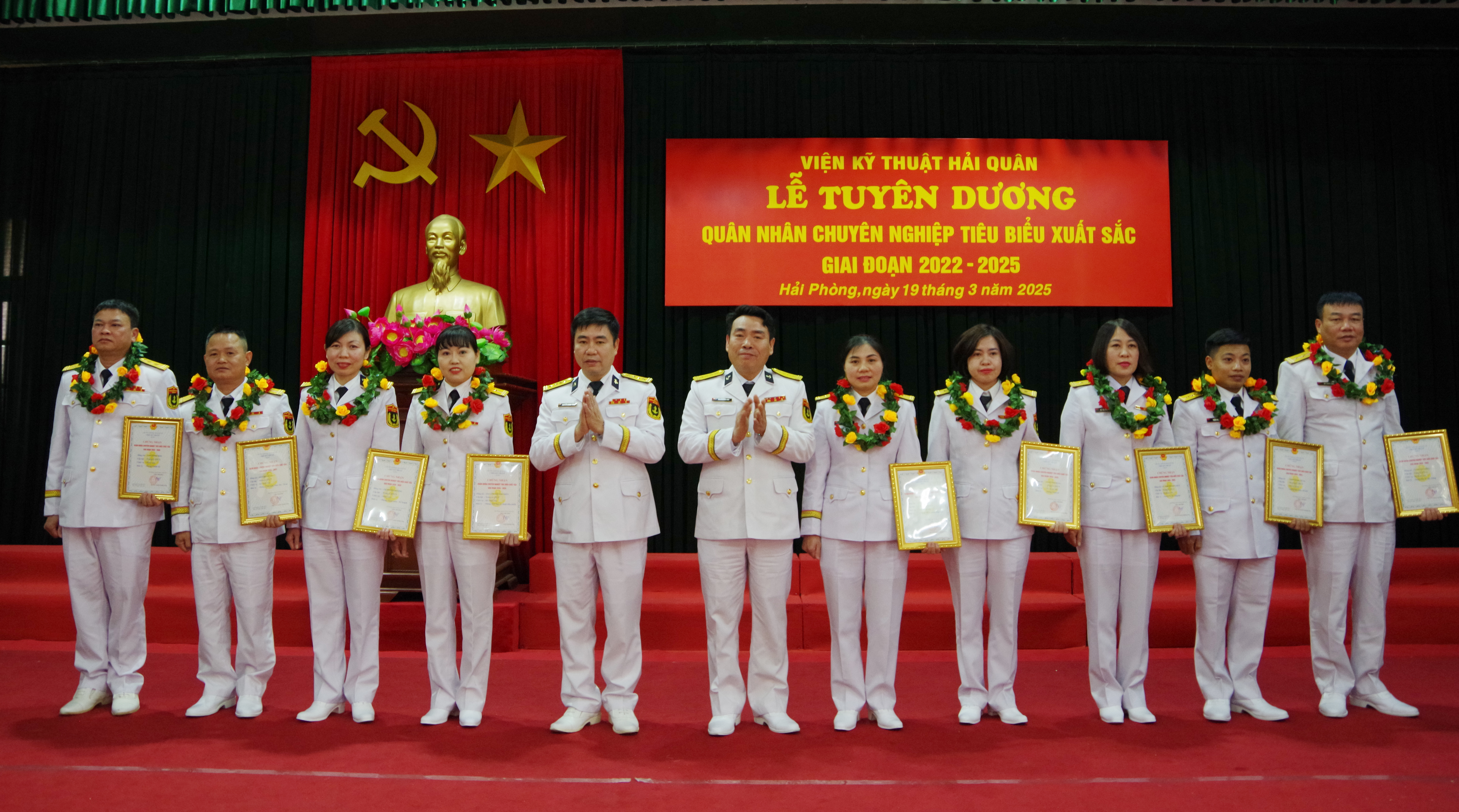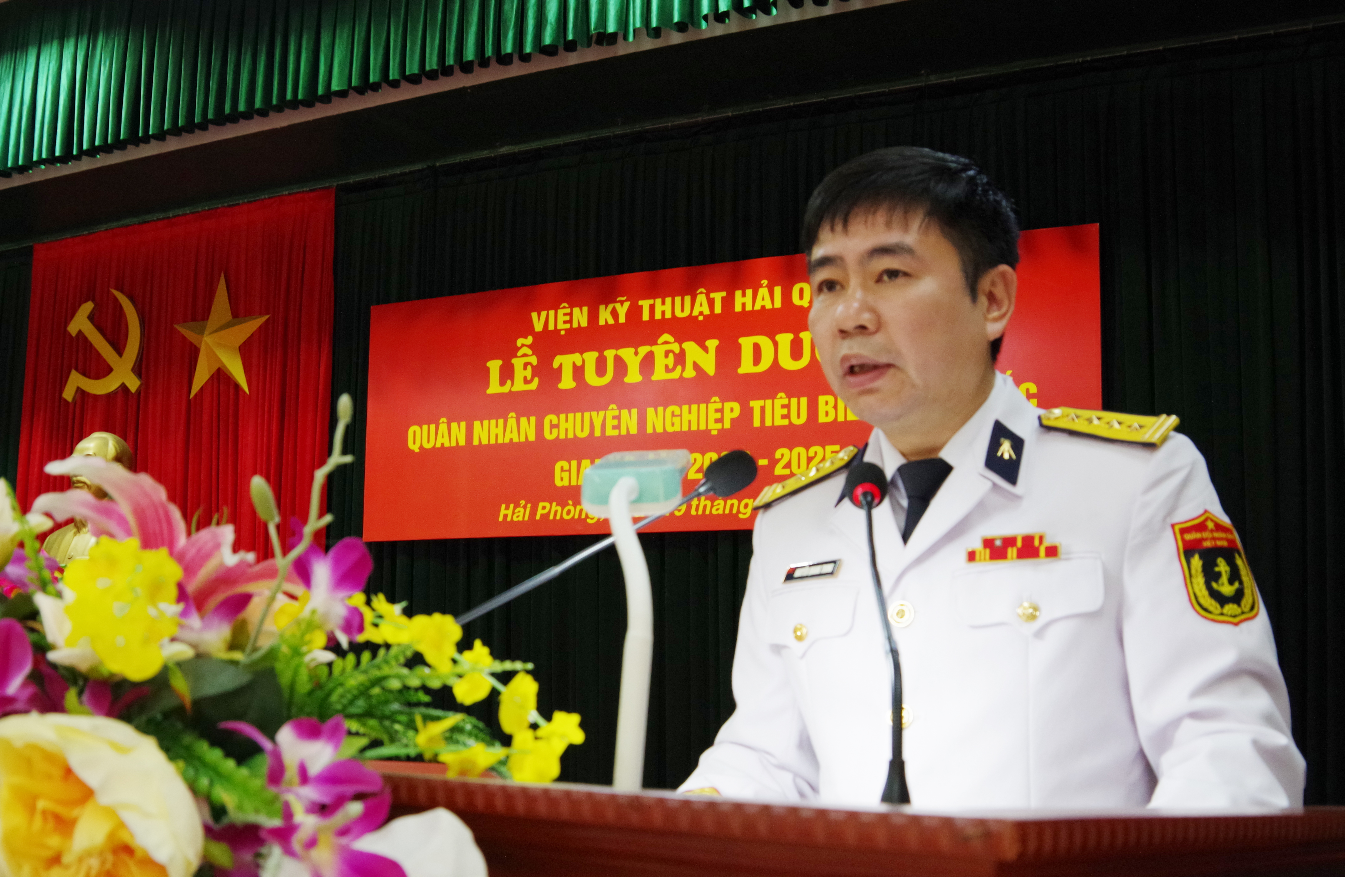 Chiều 19/3, tại Hải Phòng, Viện Kỹ thuật Hải quân tổ chức Lễ tuyên dương quân nhân chuyên nghiệp (QNCN) tiêu biểu xuất sắc giai đoạn 2022 - 2025. Đại tá Nguyễn Quang Trung, Viện trưởng chủ trì.