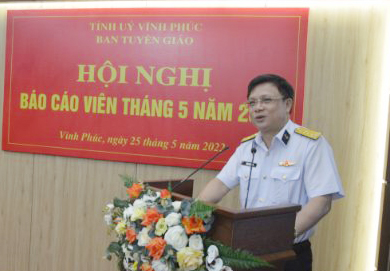 Sáng 25/5, Viện Kỹ thuật Hải quân và Ban Tuyên giáo Tỉnh ủy Vĩnh Phúc tổ chức Hội nghị thông tin về biển đảo bằng hình thức trực tuyến với 9 điểm cầu cho gần 800 đồng chí là cán bộ tuyên giáo và đội ngũ báo cáo viên, tuyên truyền viên của tỉnh.