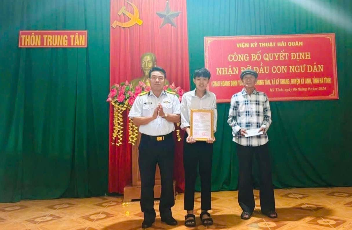 Sáng 6/9, Viện Kỹ thuật Hải quân phối hợp với Ban Tuyên giáo Tỉnh ủy Hà Tĩnh tổ chức Lễ công bố quyết định nhận đỡ đầu con ngư dân.
