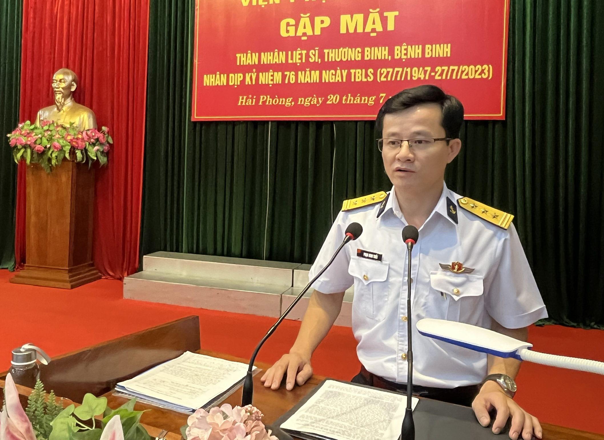 Chiều 20/7, tại Hải Phòng, Viện Y học, Cục Hậu cần Hải quân tổ chức gặp mặt thân nhân liệt sĩ, thương binh, bệnh binh nhân dịp kỷ niệm 76 năm Ngày thương binh-liệt sĩ (27/7/1947 - 27/7/2023). Dự buổi gặp mặt có Thượng tá Phạm Minh Thiết, Bí thư Đảng uỷ, Chính ủy Viện; Đại tá Nguyễn Hoàng Luyến, Giám đốc Viện và đại diện lãnh đạo các khoa, ban trong Viện.