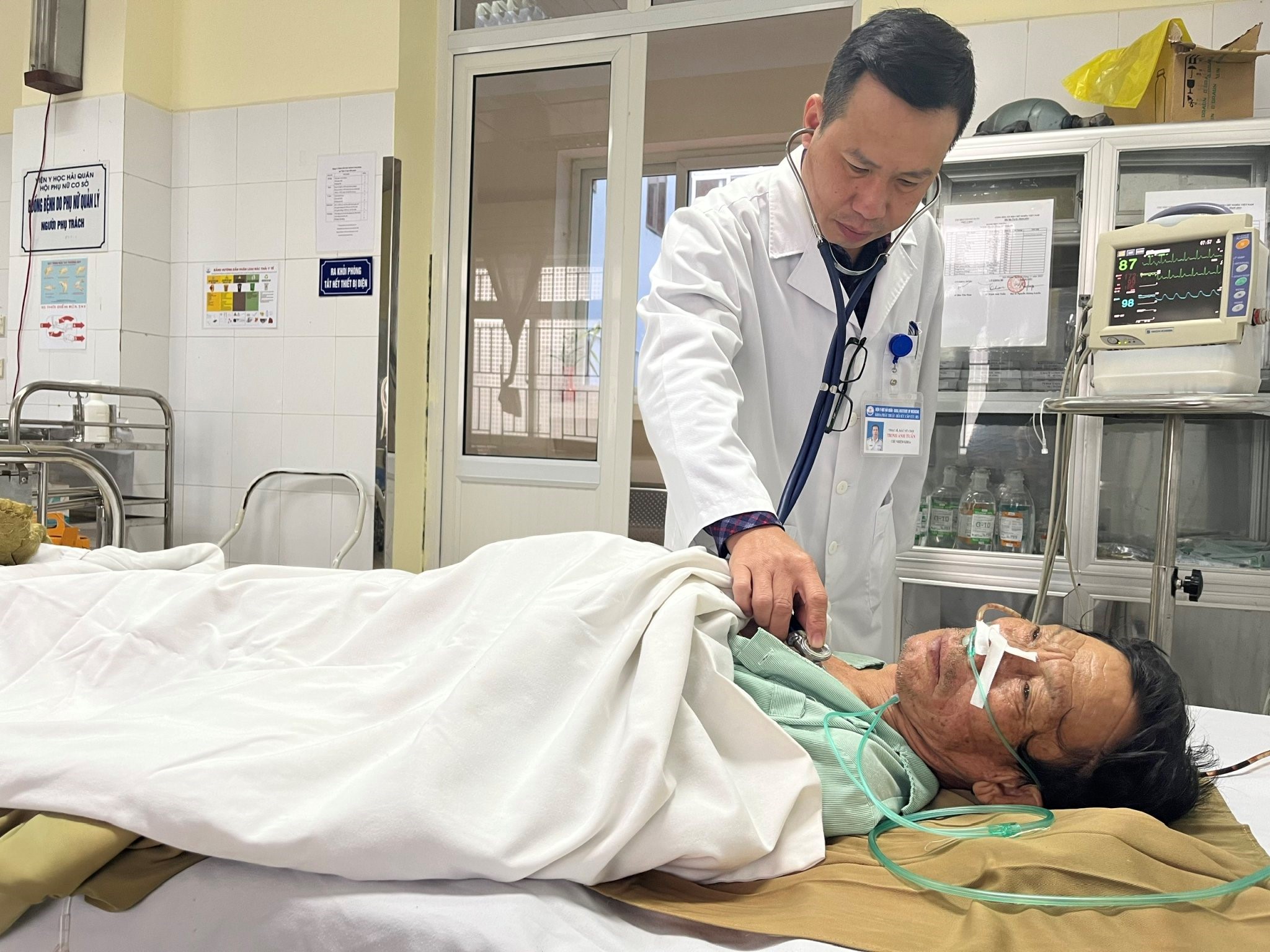 Chiều ngày 2/1, bệnh nhân Hoàng Đình C đã tỉnh táo, các dấu hiệu sinh tồn ổn định sau phẫu thuật cắt dạ dày và tiếp tục được theo dõi, chăm sóc tại phòng hồi tỉnh Khoa Phẫu thuật - Hồi sức cấp cứu (B5), Viện Y học Hải quân.