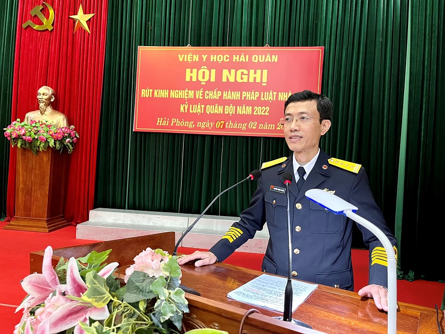 Chiều 7/2, tại Hải Phòng, Viện Y học, Cục Hậu cần Hải quân tổ chức Hội nghị rút kinh nghiệm về chấp hành pháp luật Nhà nước, kỷ luật Quân đội năm 2022. Đại tá Nguyễn Hoàng Luyến, Giám đốc Viện chủ trì.