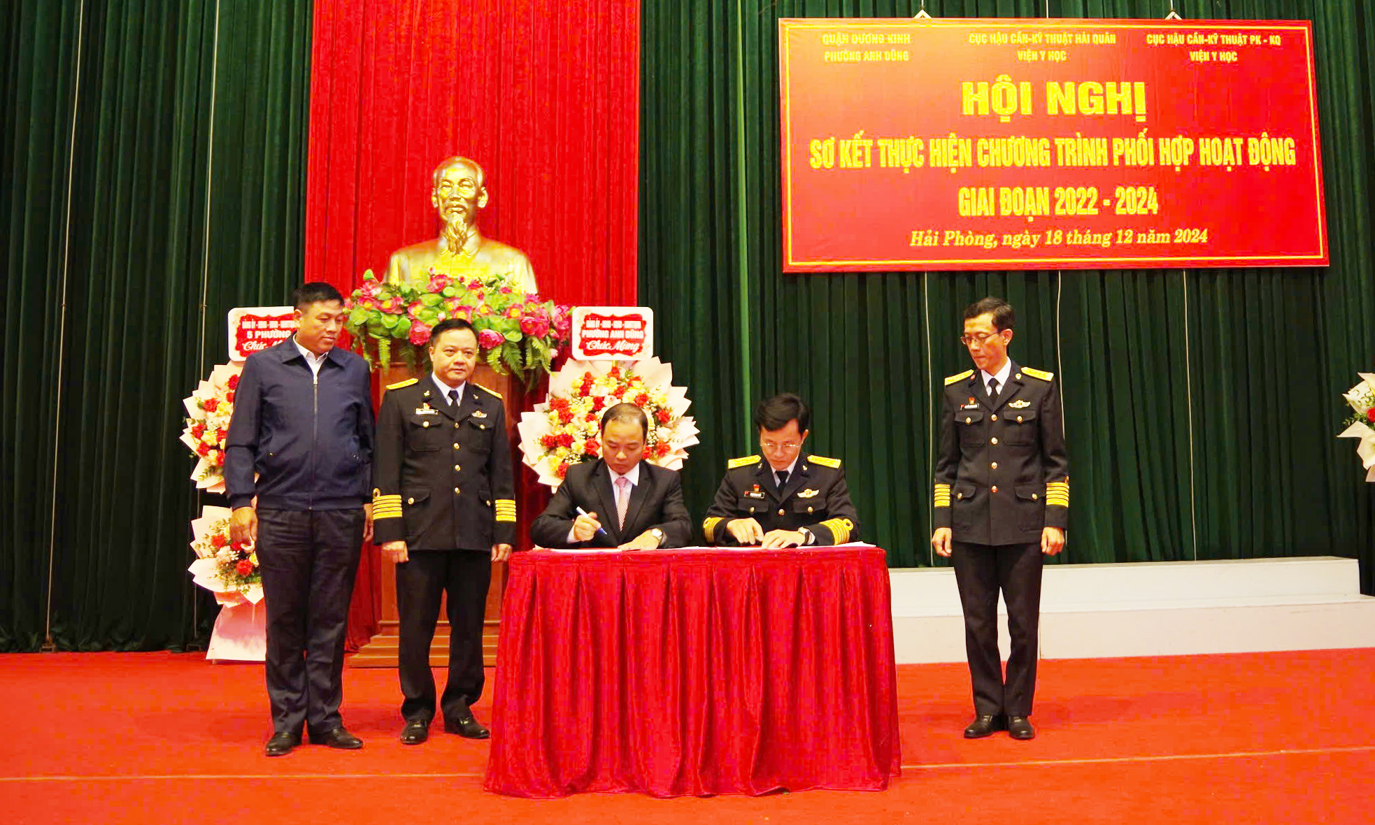 Chiều 18/12, tại Hải Phòng, Viện Y học Hải quân phối hợp với Viện Y học Phòng không - Không quân (PK-KQ) và phường Anh Dũng (quận Dương Kinh, TP. Hải Phòng) tổ chức Hội nghị sơ kết phối hợp hoạt động giai đoạn 2022-2024.