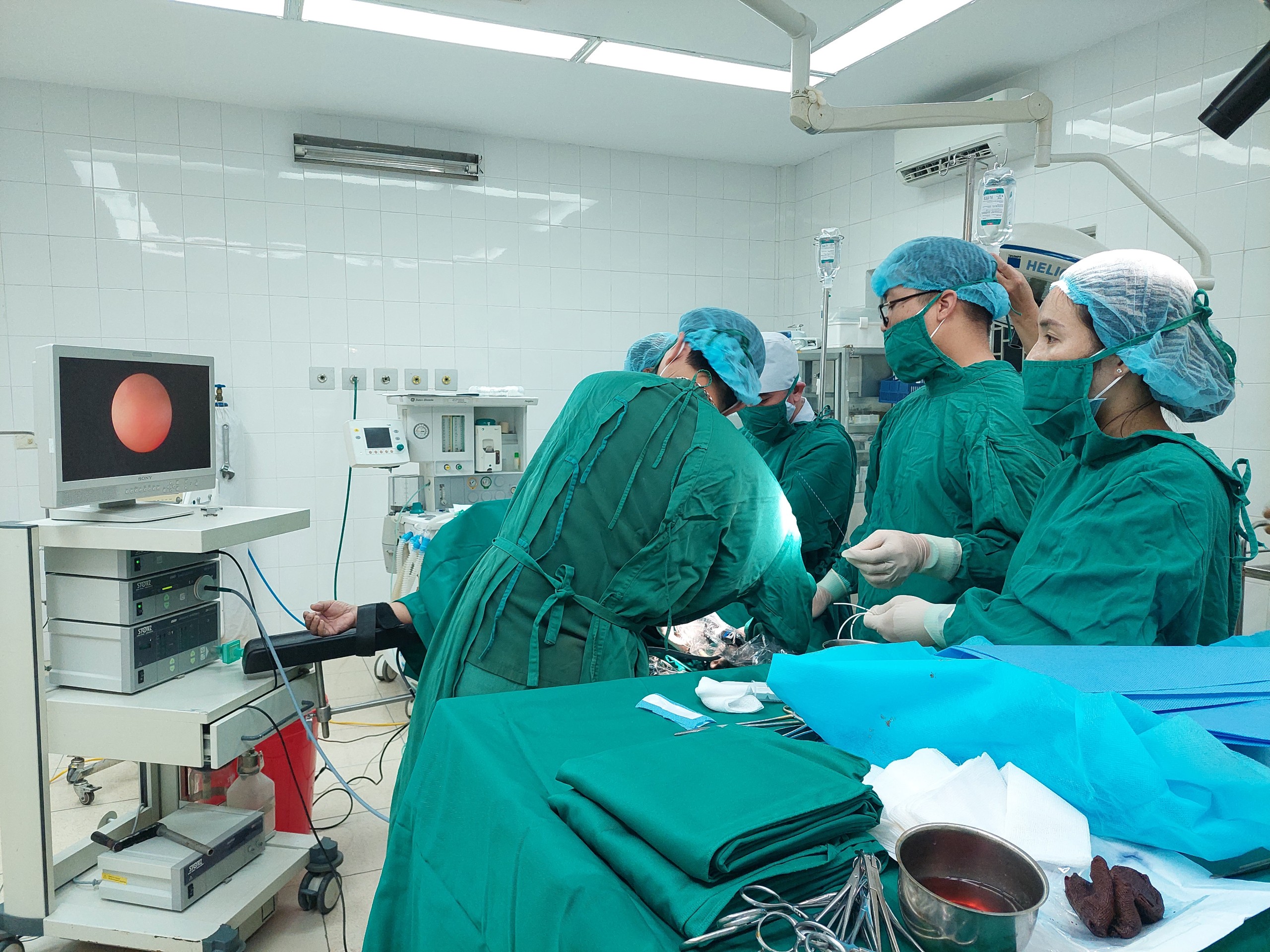 Sau hội chẩn, kíp mổ Viện Y học Hải quân có sự chỉ đạo và chuyển giao kỹ thuật của Bệnh viện Trung ương Quân đội 108, trực tiếp là TS.BS Kiều Đức Vinh (Phó Chủ nhiệm Khoa Tiết niệu trên), chỉ định phương pháp lấy sỏi qua da cho 2 bệnh nhân.