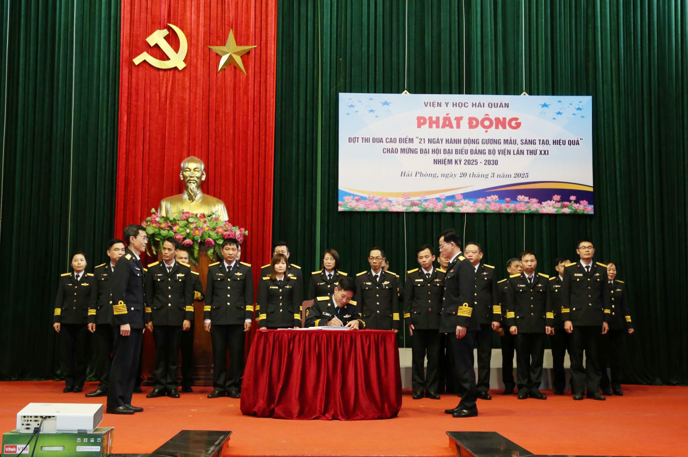 Dịp này, Viện Y học Hải quân cũng đã tổ chức phát động thi đua cao điểm “21 ngày hành động gương mẫu, sáng tạo, hiệu quả” chào mừng Đại hội đại biểu Viện Y học lần thứ XXI, nhiệm kỳ 2025-2030.