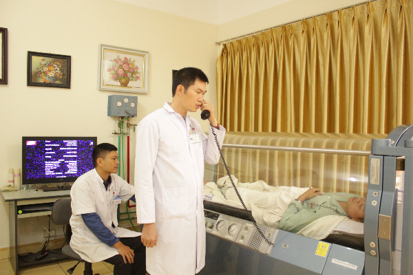 Bác sĩ Viện Y học Hải quân kiểm tra tình hình sức khỏe bệnh nhân đang điều trị bệnh giảm áp tại Viện