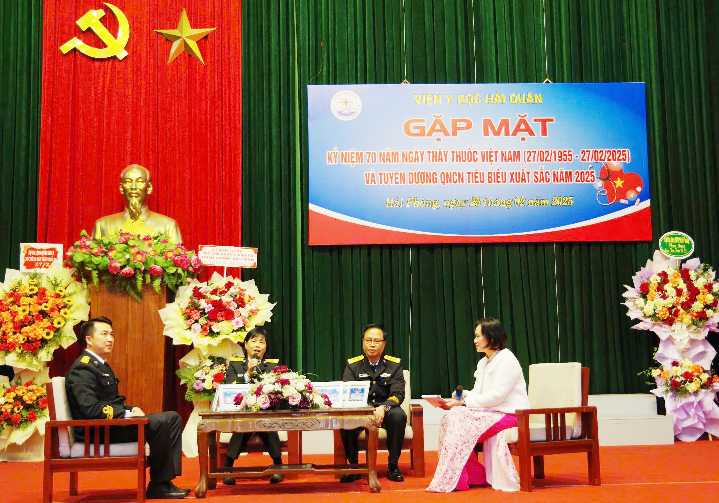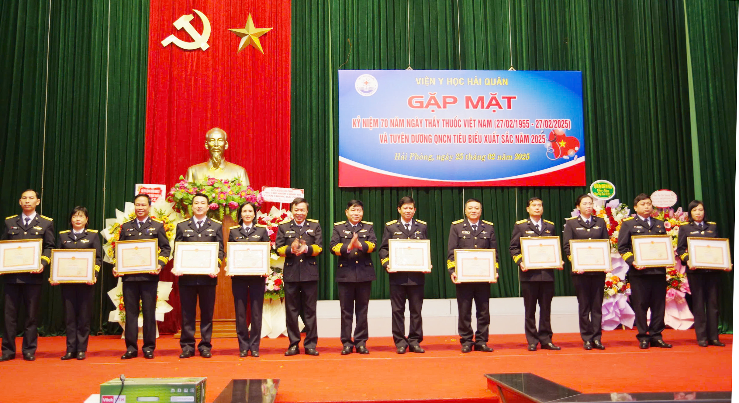 Chiều 25/2, tại TP. Hải Phòng, Viện Y học (Cục Hậu cần – Kỹ thuật Hải quân) tổ chức gặp mặt kỷ niệm 70 năm Ngày thầy thuốc Việt Nam (27/2/1955 – 27/2/2025) và tuyên dương quân nhân chuyên nghiệp (QNCN) tiêu biểu xuất sắc giai đoạn 2022-2025. Tham dự buổi gặp mặt có thủ trưởng Ban giám đốc, đại diện chỉ huy các khoa, ban, các đồng chí QNCN, CNVQP và 13 QNCN tiêu biểu xuất sắc.