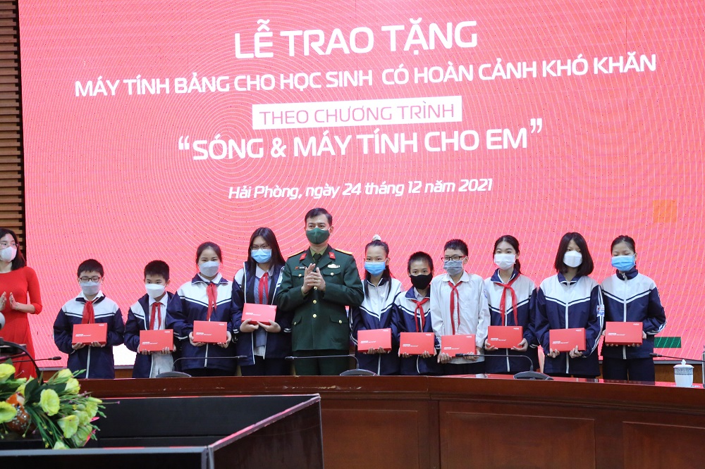 Ngày 24/12, Tập đoàn Công nghiệp – Viễn thông Quân đội (Viettel) tổ chức lễ trao tặng máy tính bảng cho học sinh, sinh viên có hoàn cảnh khó khăn trên địa bàn thành phố Hải Phòng theo chương trình “Sóng và máy tính cho em”.