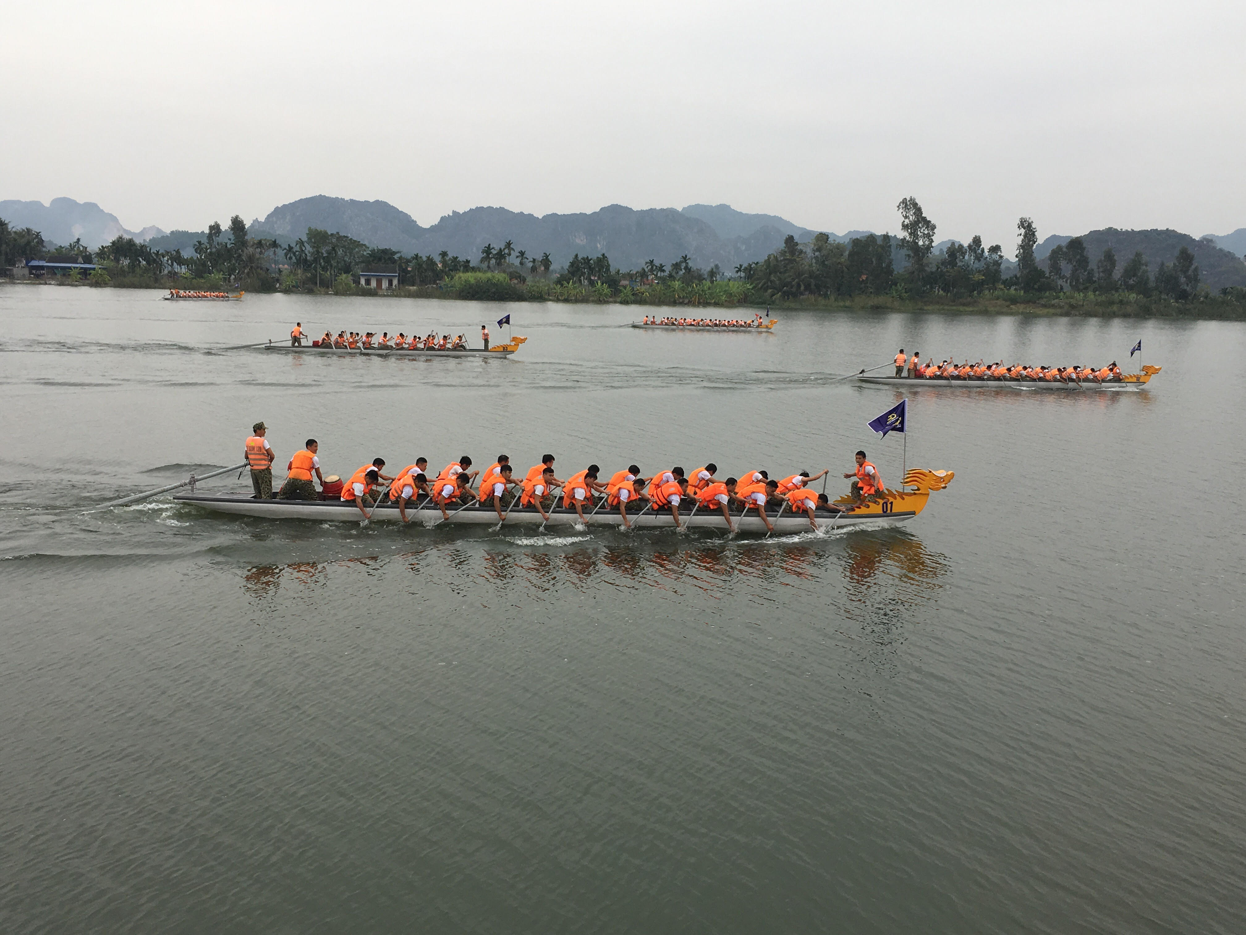 Cán bộ, chiến sĩ Lữ đoàn 126 đua thuyền rồng trên sông Giá-Xuân 2018