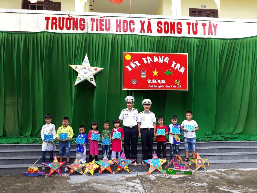 Trong không khí vui tươi, rộn ràng của thiếu nhi cả nước đón chào Tết Trung thu, tối 24-9, tại xã đảo Song Tử Tây, huyện đảo Trường Sa, tỉnh Khánh Hòa, Đoàn thanh niên đã phối hợp với trường Tiểu học tổ chức vui Tết Trung thu cho các cháu thiếu nhi trên đảo.