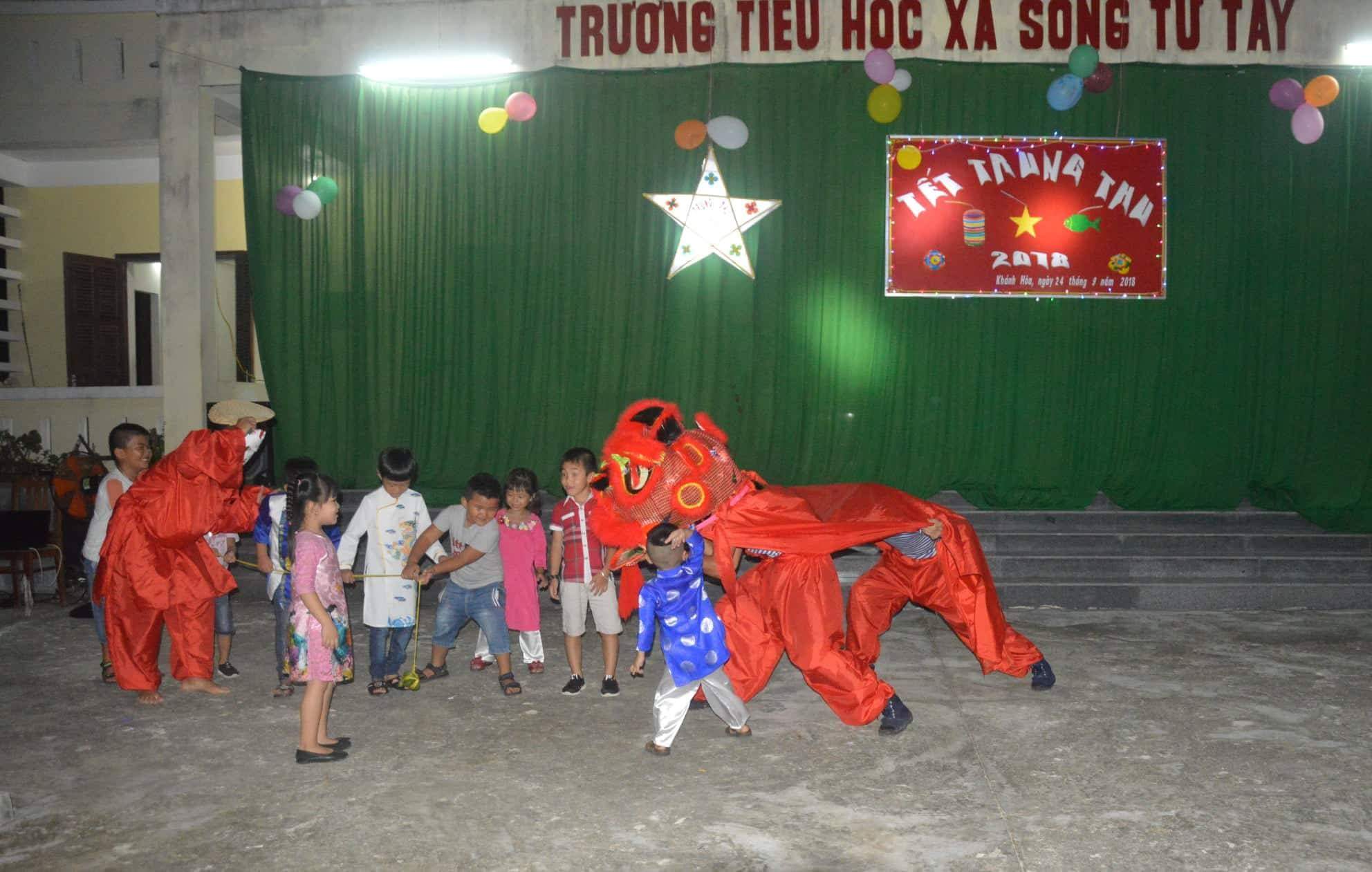 Đêm Trung thu trên đảo được mở đầu bằng màn múa lân vui nhộn, đẹp mắt mang đến cho các cháu niềm vui hân hoan của đêm hội trăng rằm. Cùng với đó là lời ca, điệu múa và những vần thơ đã được thầy và trò trường tiểu học biểu diễn trong đêm Trung thu, tất cả làm cho không khí Trung thu vui như đất liền.