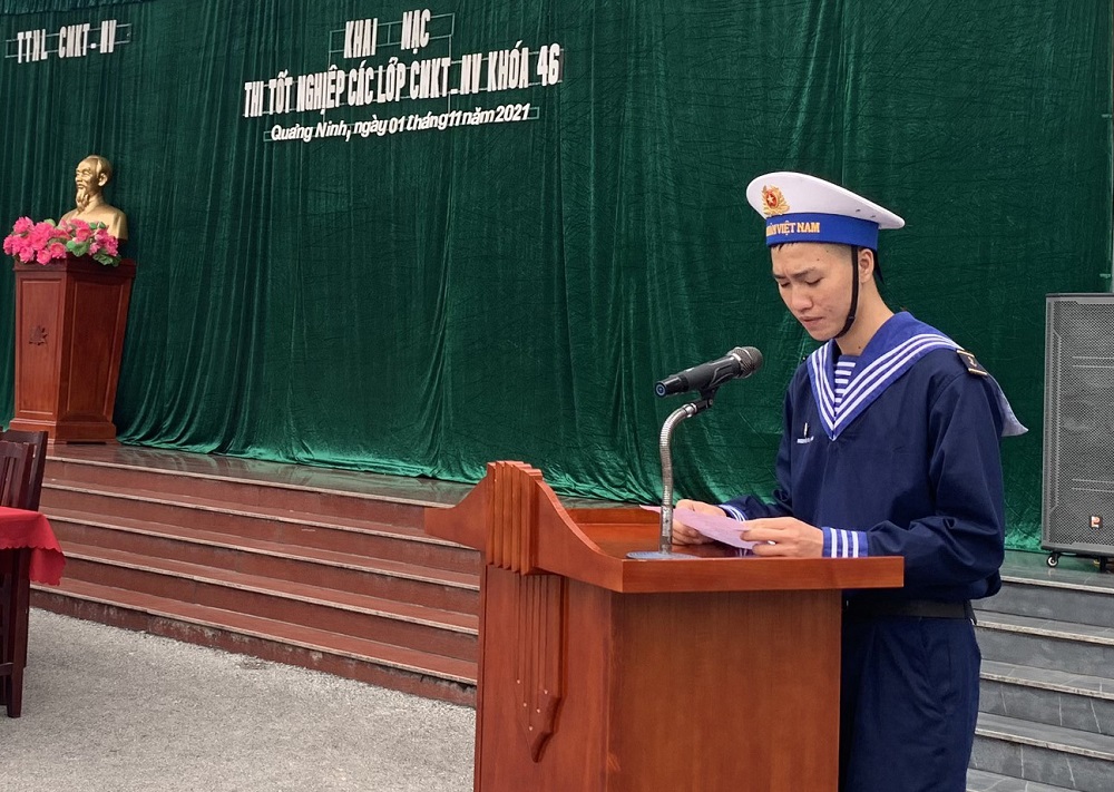 Sáng 1/11, tại Quảng Ninh, Trung Tâm huấn luyện chuyên môn kỹ thuật- nghiệp vụ (CMKT-NV), Lữ đoàn 170, Vùng 1 Hải quân tổ chức khai mạc kỳ thi tốt nghiệp các lớp học viên CMKT-NV Khóa 46.