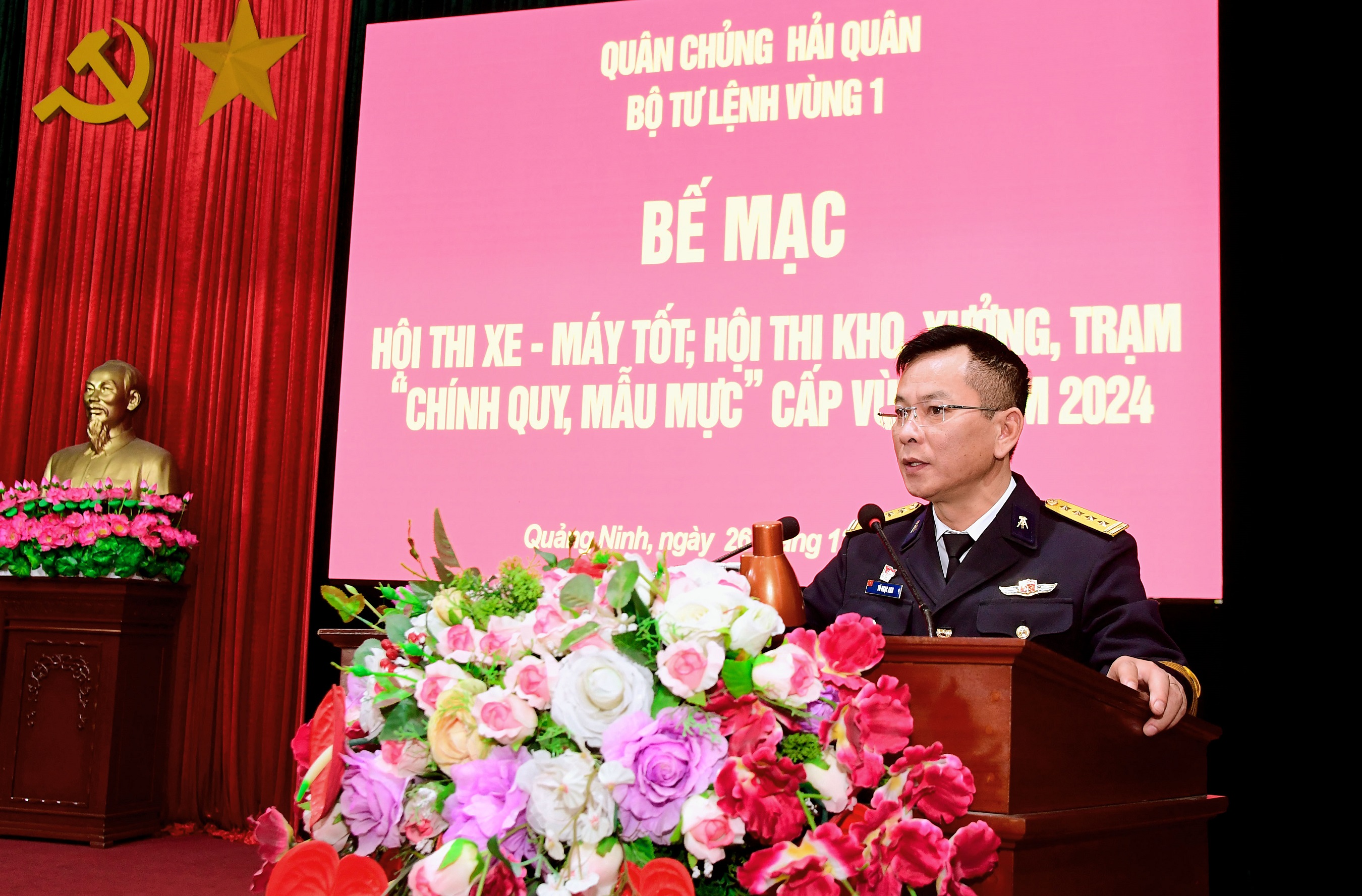 Phát biểu bế mạc hội thi, Đại tá Vũ Ngọc Anh, Chủ nhiệm Hậu cần - Kỹ thuật Vùng 1 đánh giá cao kết quả của các đơn vị đã đạt được trong hội thi đồng thời cũng chỉ ra những hạn chế, tồn tại trong hội thi và yêu cầu các đơn vị rút kinh nghiệm, nhanh chóng khắc phục.