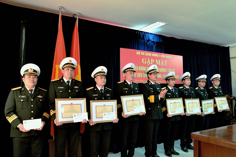 Sáng 21/12, tại TP. Hải Phòng, Bộ Tư lệnh Vùng 1 Hải quân tổ chức gặp mặt, biểu dương đội ngũ y, bác sĩ các đơn vị hoàn thành nhiệm vụ tăng cường phòng, chống dịch Covid-19 tại TP. Hồ Chí Minh và các tỉnh phía Nam. Chuẩn Đô đốc Nguyễn Viết Khánh, Tư lệnh Vùng chủ trì.