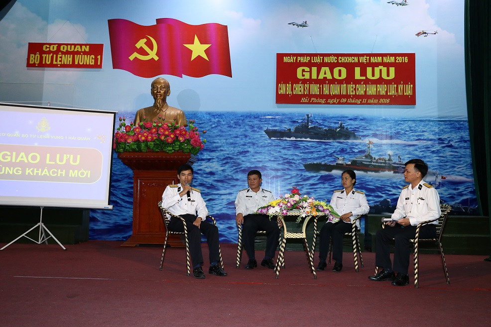 Hưởng ứng Ngày pháp luật Việt Nam, sáng 9-11 tại Hải Phòng, Cơ quan Bộ Tư lệnh Vùng 1 Hải quân tổ chức Giao lưu cán bộ chiến sĩ Vùng 1 Hải quân với việc chấp hành pháp luật, kỷ luật. Tham gia có đông đảo cán bộ, chiến sĩ cơ quan Bộ Tư lệnh Vùng.