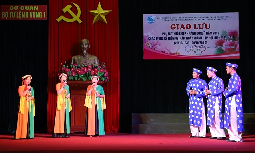 Chiều 16-10, tại Hải Phòng, Hội phụ nữ cơ sở Phòng Chính trị Vùng 1 Hải quân tổ chức chương trình giao lưu văn hóa, văn nghệ, thể dục thể thao chào mừng kỷ niệm 89 năm Ngày thành lập Hội Liên hiệp phụ nữ Việt Nam. Tham gia giao lưu có Hội phụ nữ cơ sở Phòng Tham mưu, Hậu cần, Lữ đoàn 679 thuộc Vùng 1 và Lữ đoàn 126, 131, Nhà máy X46, Trường THCS Tân Dương (huyện Thủy Nguyên).