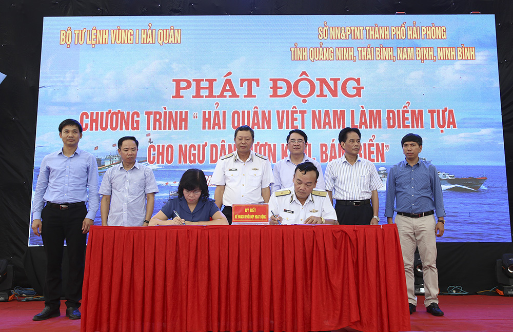 Sáng 9-7, tại quận Đồ Sơn, TP. Hải Phòng, Cụm lực lượng Hải quân 1 do Bộ Tư lệnh Vùng 1 Hải quân chủ trì phối hợp với Sở Nông nghiệp và Phát triển nông thôn TP. Hải Phòng và các tỉnh Quảng Ninh, Thái Bình, Nam Định, Ninh Bình tổ chức phát động Chương trình “Hải quân Việt Nam làm điểm tựa cho ngư dân vươn khơi, bám biển”. Dự và chỉ đạo có các đồng chí: Chuẩn Đô đốc Đặng Minh Hải, Ủy viên Thường vụ Đảng ủy Quân chủng, Phó Chính ủy Hải quân; Lê Khắc Nam, Ủy viên Ban Thường vụ Thành ủy, Phó Chủ tịch UBND TP. Hải Phòng; thủ trưởng Bộ Tư lệnh Vùng 1 Hải quân.