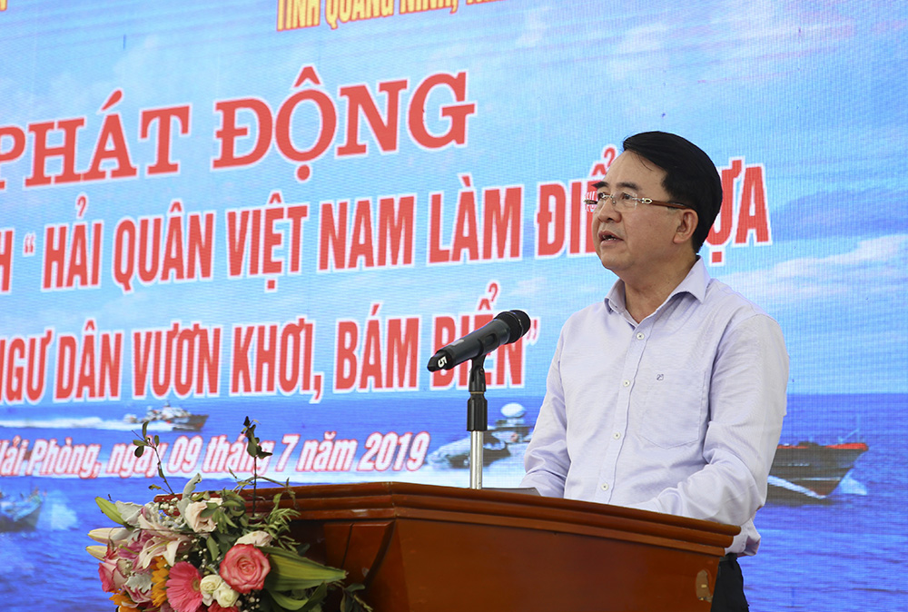 Phát biểu tại buổi lễ, đồng chí Lê Khắc Nam nhấn mạnh: Trong những năm qua, sự quan tâm của các cấp, các ngành, sự hỗ trợ của Quân chủng Hải quân đã giúp ngư dân Hải Phòng yên tâm bám biển dài ngày; khai thác thủy sản an toàn, đúng pháp luật gắn với xây dựng thế trận quốc phòng toàn dân trên biển... Kinh tế thủy sản từng bước phát triển toàn diện, đời sống người dân ngày càng được cải thiện và nâng cao; tình hình an ninh, quốc phòng trên các vùng biển, đảo được đảm bảo vững chắc…