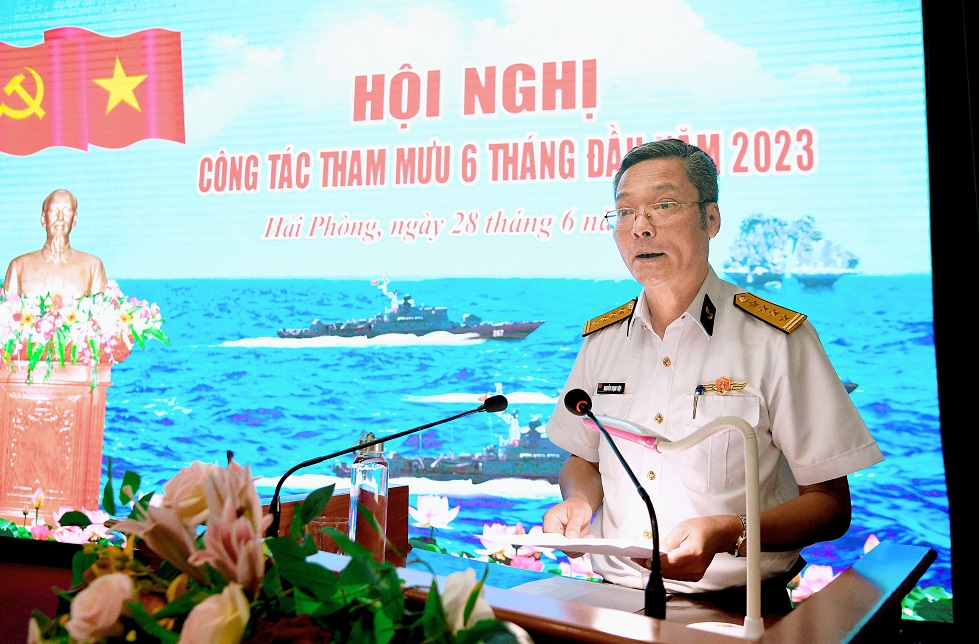 Sáng 28/6, tại Hải Phòng, Vùng 1 Hải quân tổ chức hội nghị công tác tham mưu 6 tháng đầu năm 2023. Đại tá Nguyễn Thịnh Tiệp, Phó Tư lệnh, Tham mưu trưởng Vùng chủ trì.