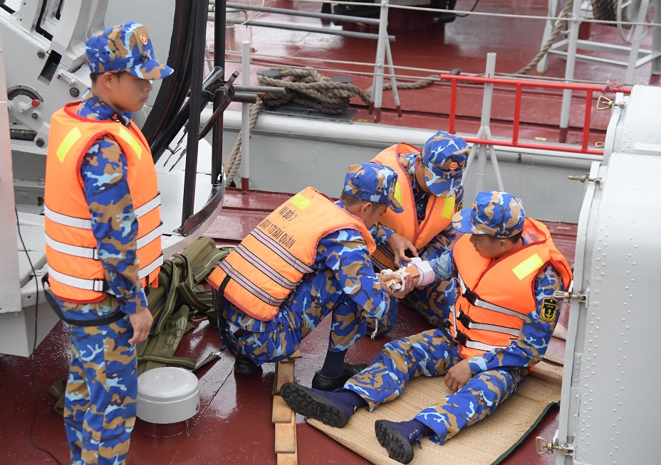 Tàu 203, Lữ đoàn 169 thực hành nội dung cấp cứu thương binh