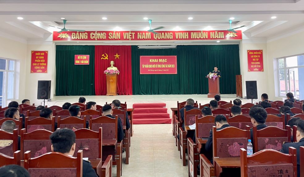 Sáng 4/12, tại Tiểu đoàn 158 (huyện Thủy Nguyên, TP. Hải Phòng), Vùng 1 Hải quân tổ chức khai mạc lớp tập huấn quân nhân chuyên nghiệp (QNCN) mới về Vùng công tác năm 2023. Đại tá Bùi Văn Chiến, Phó Tham mưu trưởng Vùng dự và chỉ đạo.