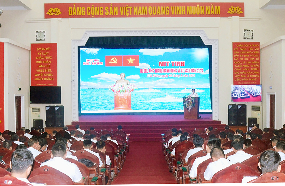 Sáng 3/5, tại Hải Phòng, cơ quan Bộ Tư lệnh Vùng 1 Hải quân tổ chức Lễ mít tinh hưởng ứng Tháng hành động về an toàn, vệ sinh lao động (AT-VSLĐ) năm 2024. Đại tá Phan Tiến Bảo, Phó Tư lệnh Vùng dự và chỉ đạo.
