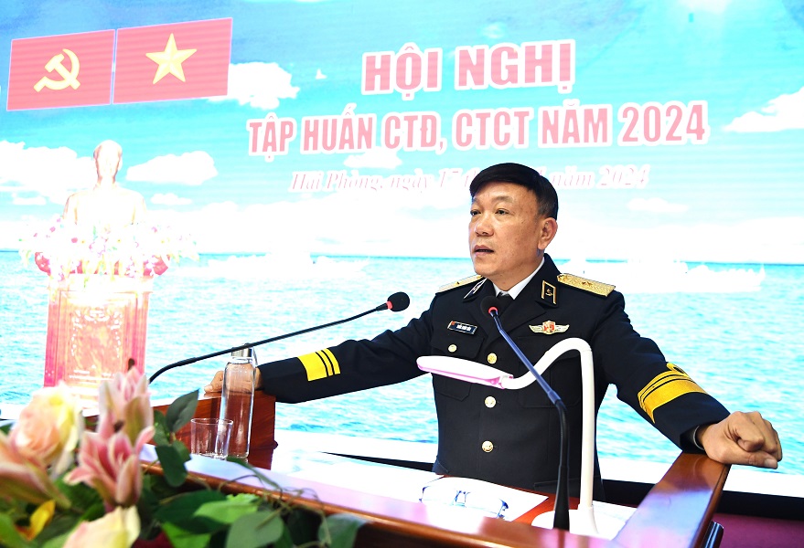 Phát biểu khai mạc lớp tập huấn, Chuẩn Đô đốc Trần Xuân Văn nhấn mạnh: Nội dung tập huấn là những vấn đề cốt lõi, trọng tâm, cần thiết, đòi hỏi đội ngũ cán bộ cần nắm vững và thống nhất cao trong tổ chức thực hiện. Đây là cơ hội tốt để cán bộ các cấp tiếp thu những nội dung, phương pháp, kinh nghiệm tiến hành CTĐ, CTCT, vận dụng vào thực tiễn tại cơ quan, đơn vị, góp phần nâng cao chất lượng hoàn thành nhiệm vụ năm 2024.