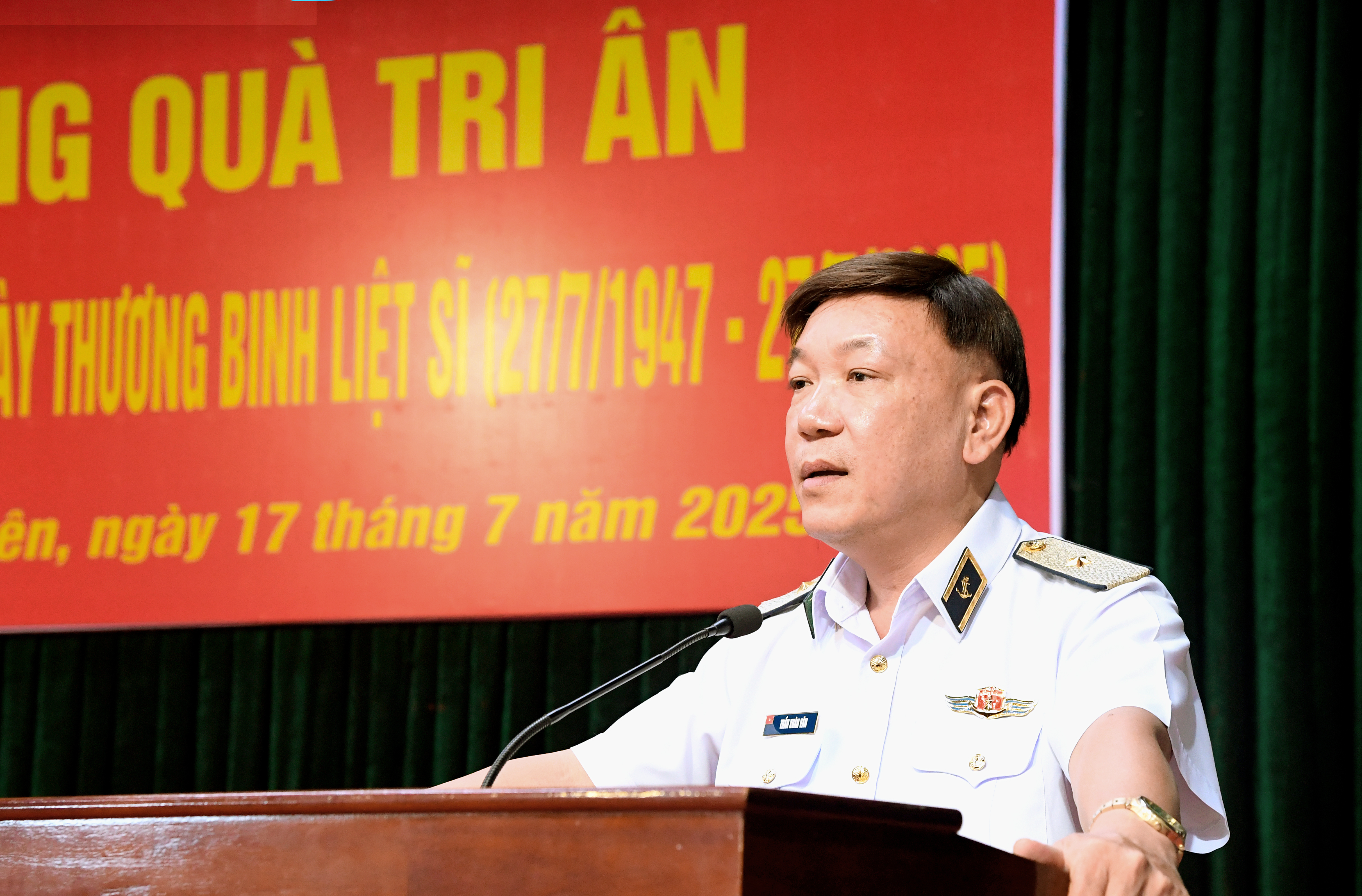 Sáng 17/7, đoàn công tác của Bộ Tư lệnh Vùng 1 Hải quân do Chuẩn Đô đốc Trần Xuân Văn, Bí thư Đảng ủy, Chính ủy Vùng làm trưởng đoàn đã đến thăm, tặng quà các gia đình chính sách nhân dịp kỷ niệm 78 năm Ngày thương binh, liệt sĩ (27/7/1947 - 27/7/2025) tại phường Thủy Nguyên, TP.Hải Phòng.