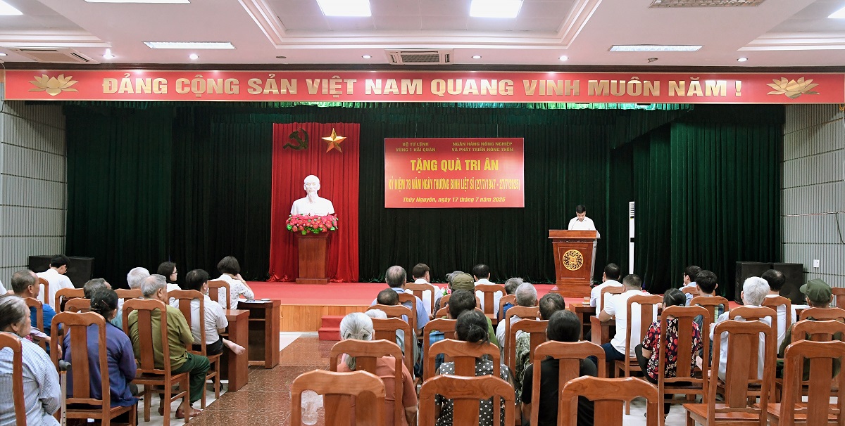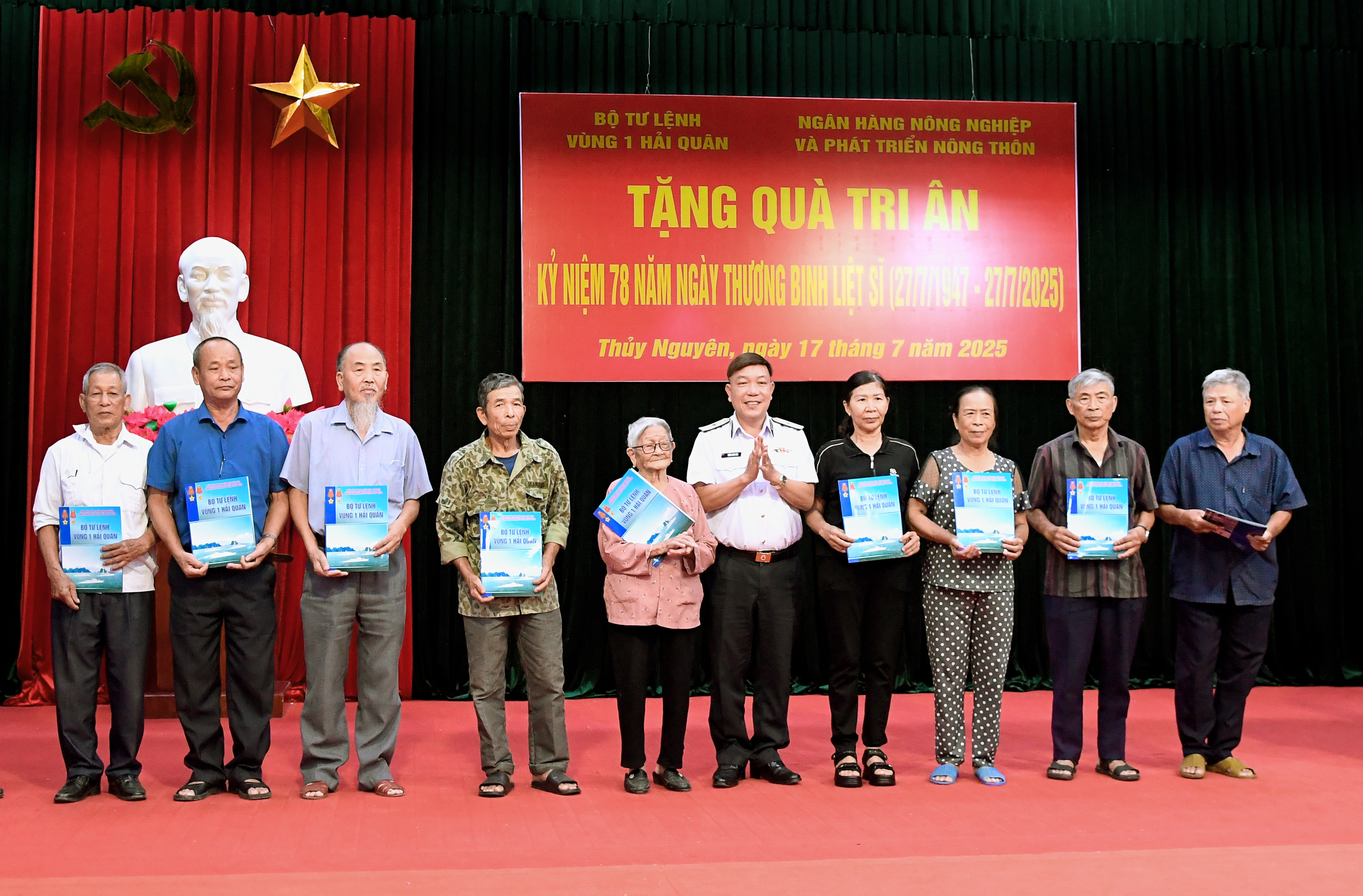 Trong dịp này, Bộ Tư lệnh Vùng 1 Hải quân trao tặng gần 100 phần quà trị giá hơn 60 triệu đồng đến thương binh, thân nhân liệt sĩ, các trường hợp đang đề nghị liệt sĩ của Vùng; các gia đình chính sách, người có công với cách mạng tại 5 phường Thuỷ Nguyên, Thiên Hương, Hoà Bình, Nam Triệu, Bạch Đằng (TP. Hải Phòng)