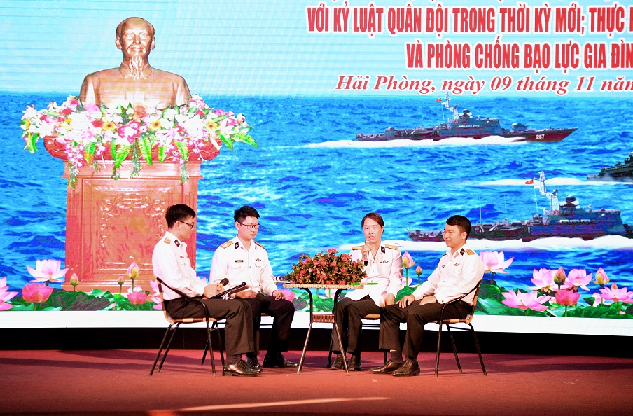Chiều 9/11, tại TP. Hải Phòng, cơ quan Bộ Tư lệnh Vùng 1 Hải quân tổ chức tọa đàm với chủ đề “Cán bộ, đoàn viên, hội viên phụ nữ cơ quan Bộ Tư lệnh Vùng 1 với kỷ luật quân đội thời kỳ mới; thực hiện bình đẳng giới và phòng chống bạo lực gia đình”. Tham dự buổi tọa đàm có thủ trưởng và toàn thể cán bộ, chiến sĩ khối cơ quan Bộ Tư lệnh Vùng.