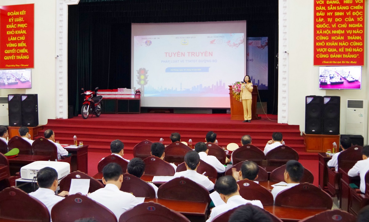 Chiều 29-10, tại Hải Phòng, Vùng 1 Hải quân phối hợp với Phòng Cảnh sát Giao thông (CSGT) đường bộ, đường sắt Công an thành phố Hải Phòng tổ chức tuyên truyền pháp luật về an toàn giao thông, hướng dẫn lái xe an toàn cho 300 cán bộ, chiến sĩ cơ quan Bộ Tư lệnh Vùng.