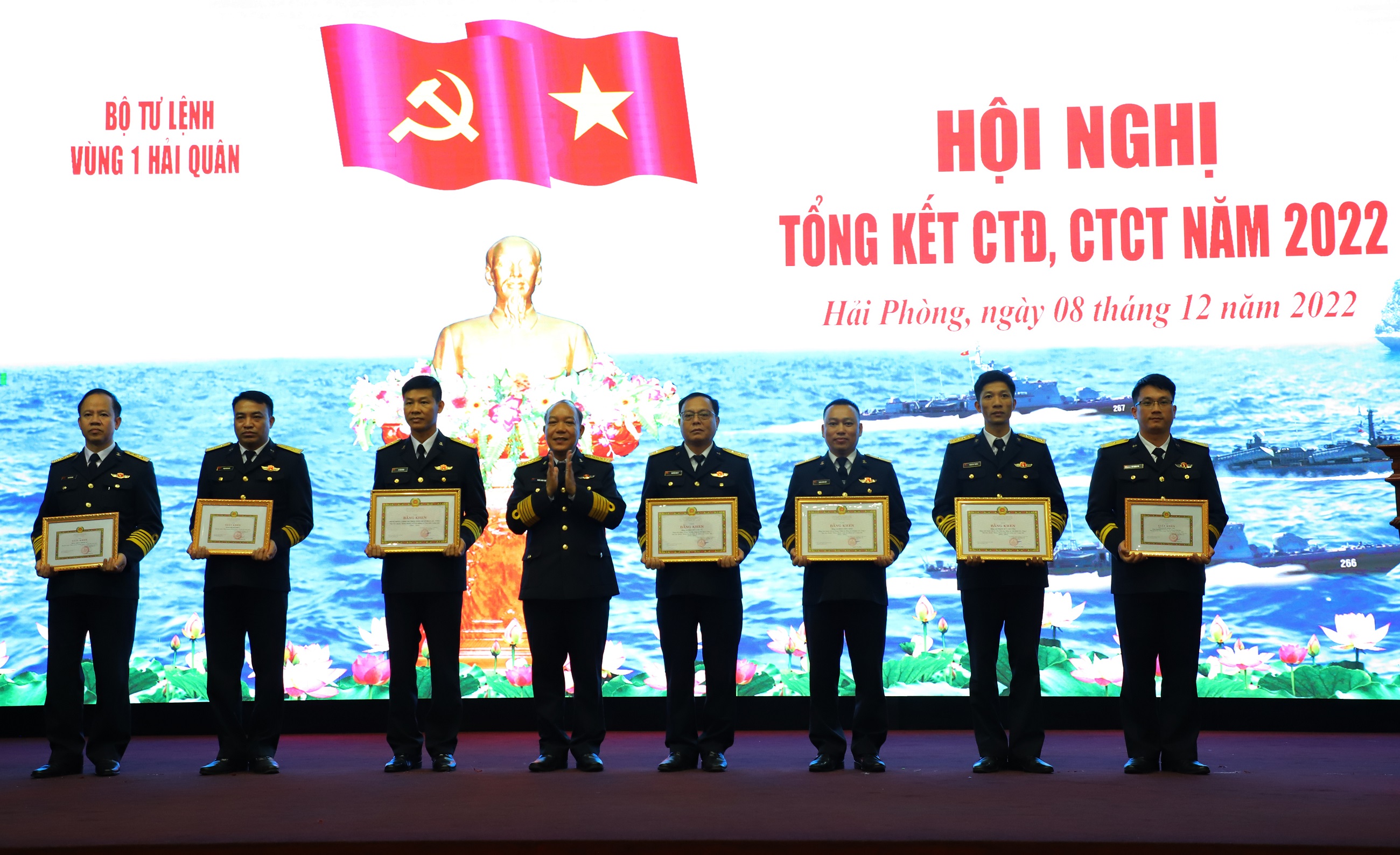 Tại hội nghị, Vùng 1 Hải quân đã trao thưởng 3 tập thể và 4 cá nhân đạt tiêu chuẩn hoàn thành xuất sắc nhiệm vụ tiêu biểu 5 năm liền (2018-2022).
