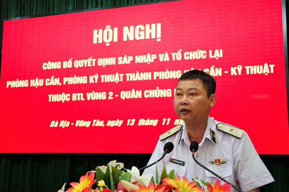 Phát biểu chỉ đạo tại hội nghị, Chuẩn Đô đốc Nguyễn Anh Tuấn, Tư lệnh Vùng 2 Hải quân ghi nhận, biểu dương và đánh giá cao công tác lãnh đạo, chỉ đạo, chuẩn bị về mọi mặt, bảo đảm cho việc sáp nhập và tổ chức lại cơ quan Hậu cần - Kỹ thuật.