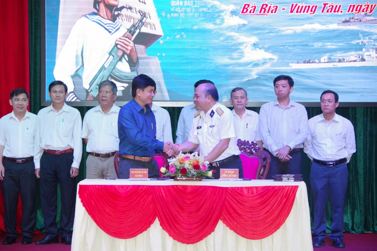 Vùng 2 Hải quân và Sở Nông nghiệp và Phát triển nông thôn tỉnh Bà Rịa-Vũng Tàu ký kết Chương trình "Hải quân Việt Nam làm điểm tựa cho ngư dân vươn khơi, bám biển". Ảnh: Trung Hiếu